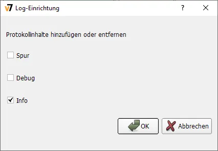 Durch Auswahl dieses Punkts wird das Dialogfeld „Set Log“ mit drei Elementen geöffnet: