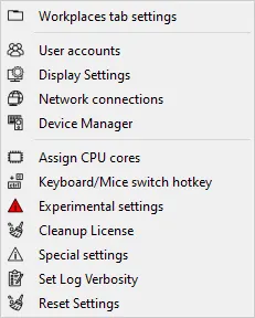 Также у каждого рабочего места есть контекстное меню, которое содержит расширенные настройки. Вызвать его можно кнопкой