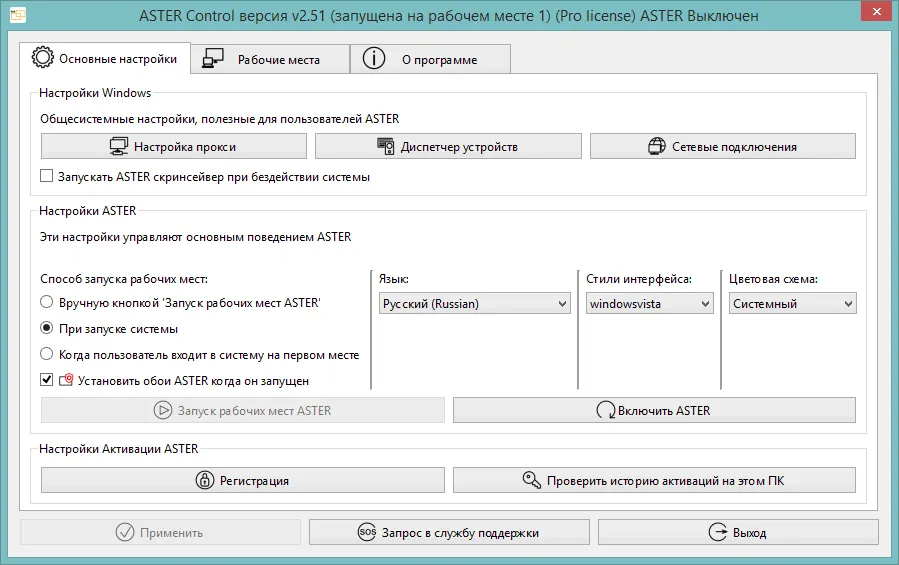 - на вкладке «Основные настройки» кнопкой «Запуск рабочих мест АСТЕР»